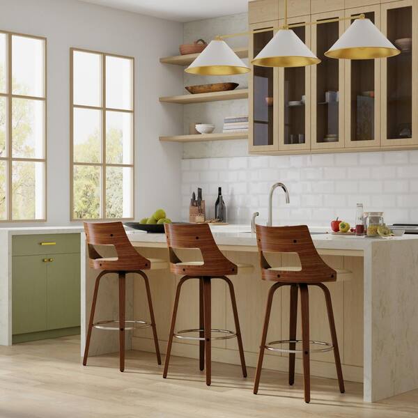 Dallyn Contemporary 17 in. Wood Swivel Bar Stool (Set of 2) in Cream Vegan Faux Leather