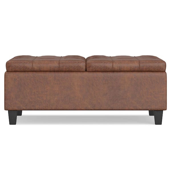 Ellis 36 in. Wide Contemporary Square Coffee Table Storage Ottoman in Distressed Saddle Brown Vegan Faux Leather