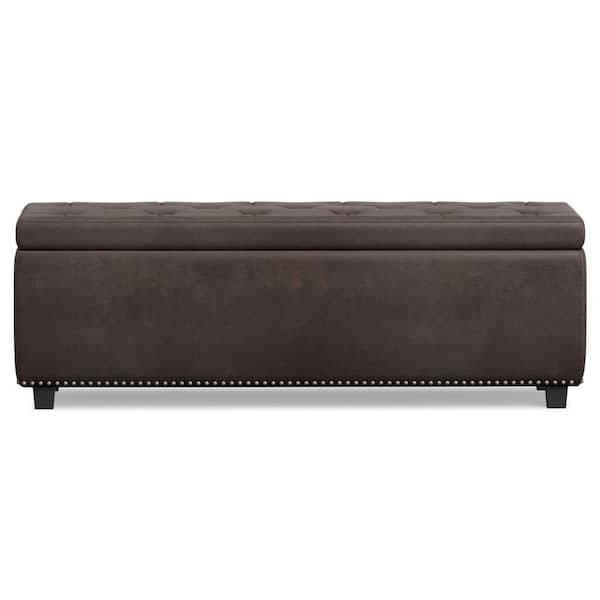 Hamilton 48 in. Wide Transitional Rectangle Storage Ottoman in Distressed Brown Vegan Faux Leather, Assembled
