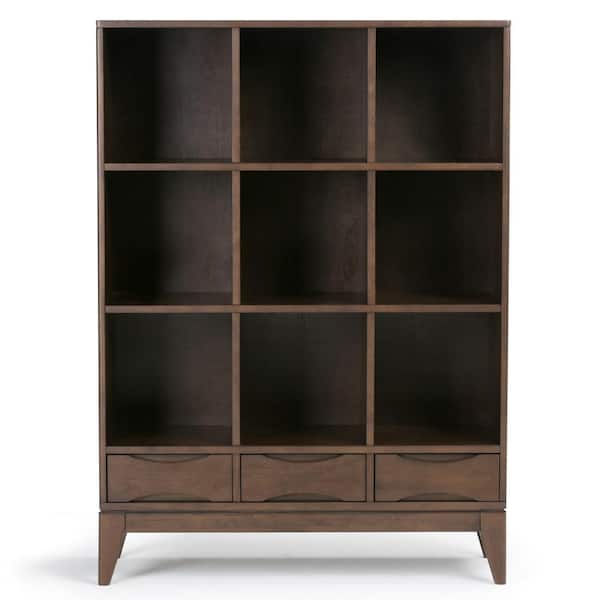 Harper Solid Hardwood 58 in. x 42 in. Mid-Century Modern Cube Storage Bookcase with Drawers in Walnut Brown