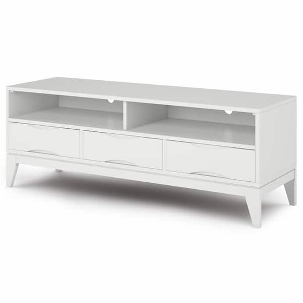 Harper Solid Hardwood 60 in. Wide Mid Century Modern TV Media Stand in White Fits TVs up to 65 in.