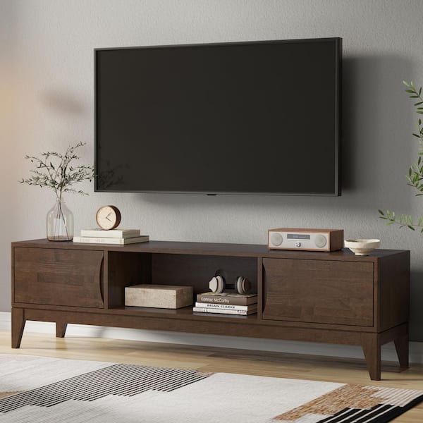 Harper Walnut Brown 72 in. Low TV Media Stand Fits TVs up to 80 in.