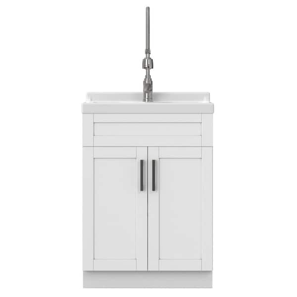 Hennessy Deluxe All-In-One 24 in. Drop-In Utility Laundry Sink with Cabinet and ABS Sink in Pure White