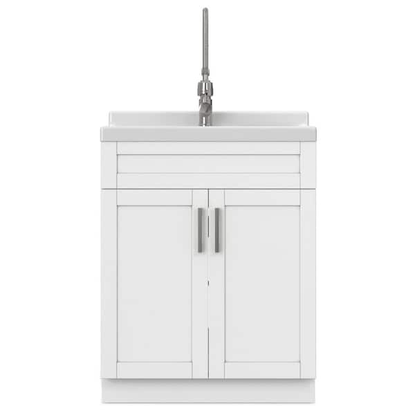 Hennessy Deluxe All-In-One 28 in. Drop-In Utility Laundry Sink with Cabinet and ABS Sink in Pure White