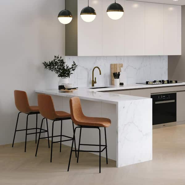 Jolie 33.7 in. H Contemporary Counter Height Stool in Camel Brown Faux Leather with Curved Back (Set of 2)