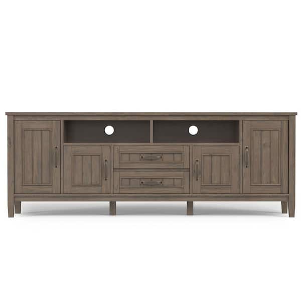 Lev SOLID WOOD 72 in. Wide Contemporary TV Media Stand in Smoky Brown For TVs up to 80 in.es