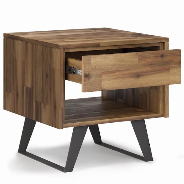 Lowry Solid Acacia Wood and Metal 22 in. Wide Square Modern Industrial End Side Table in Distressed Golden Wheat