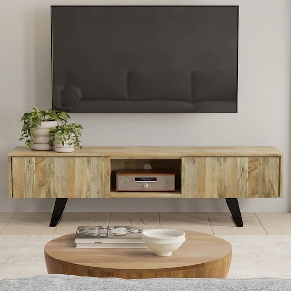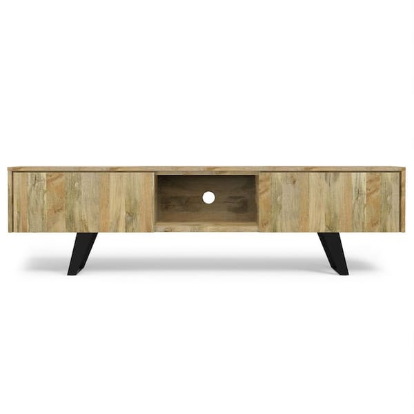 Lowry Solid Mango Wood 72 in. Wide Modern Industrial TV Media Stand in Natural For TVs up to 80 in.