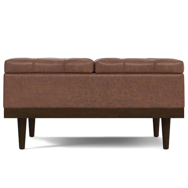 Mariah Distressed Saddle Brown Vegan Faux Leather Lift Top Table Storage Ottoman