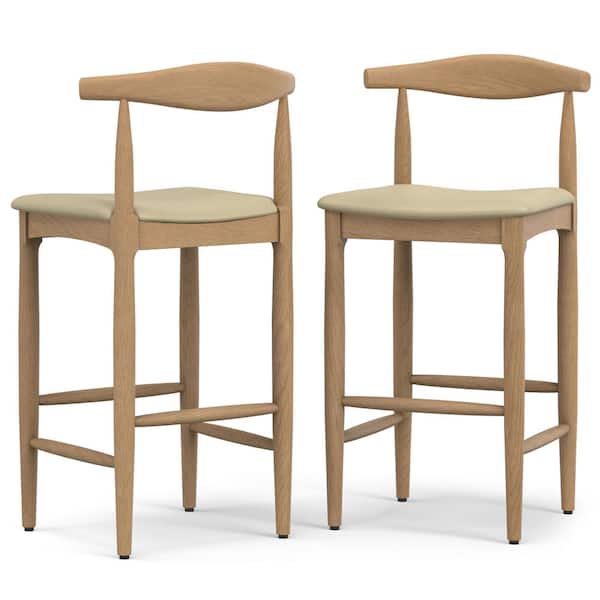 Molly 29 in. Mid Century Modern Bar Stool in Natural Wood Faux Leather, Fully Assembled