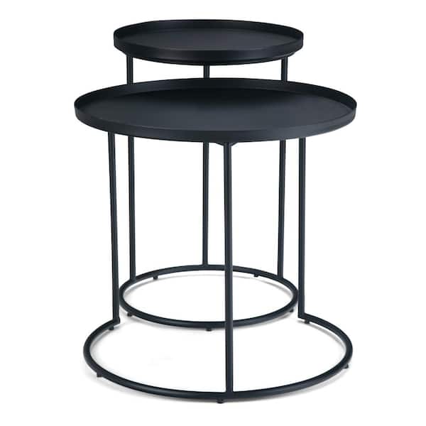 Monet Industrial 24 in. Wide Metal 2-Piece Nesting Table in Black, Fully Assembled