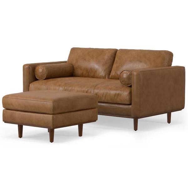 Morrison 72 inch in. Straight Arm Genuine Faux Leather Mid-Century Modern Rectangle Wide Sofa Set in. Caramel Brown