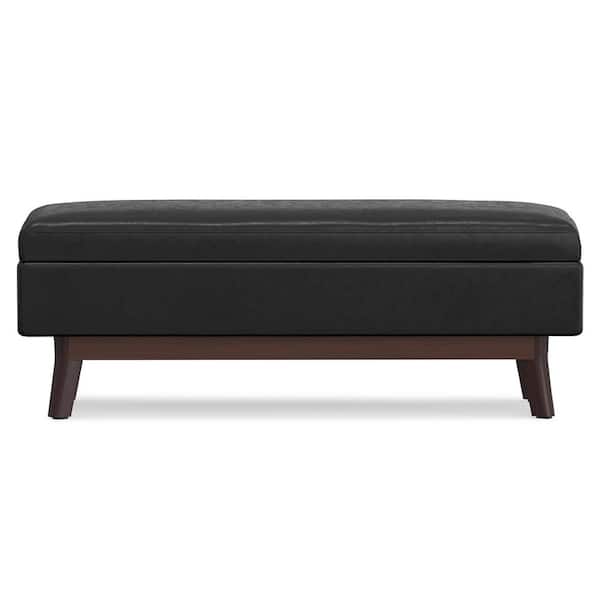 Owen 48 in. Rectangle Storage Ottoman in Distressed Black Vegan Faux Leather, Assembled
