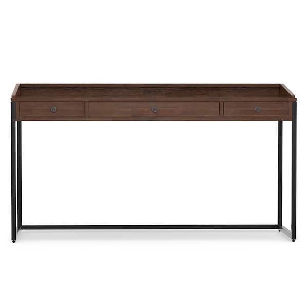 Ralston 60 in. Rectangular Distressed Charcoal Brown 2-Drawer Writing Desk with Metal Frame