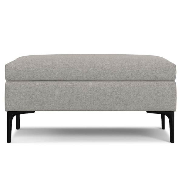 Rebecca 36 in. Wide Mid Century Coffee Table Storage Ottoman with Lift Up Lid in Cloud Grey Polyester Linen Look