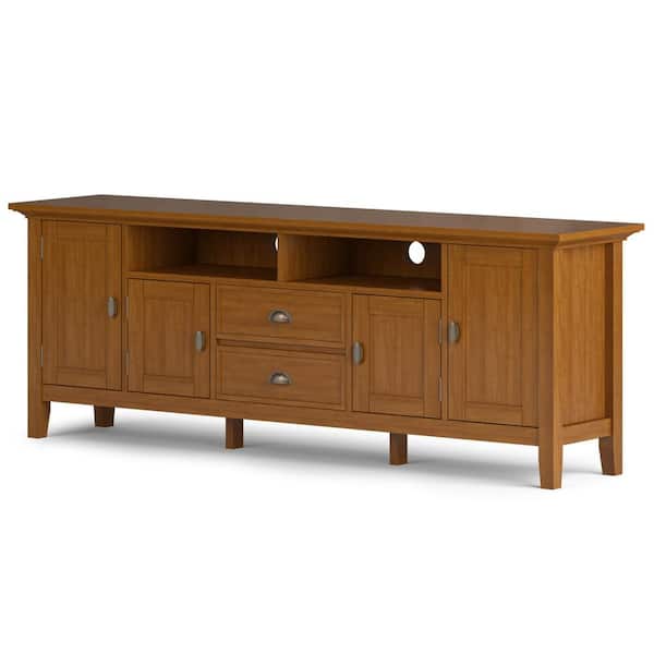 Redmond Solid Wood 72 in. Wide Transitional TV Media Stand in Light Golden Brown for TVs up to 80 in.