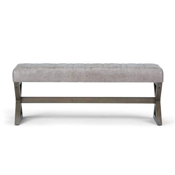 Salinger 48 in. Wide Contemporary Rectangle Ottoman Bench in Distressed Grey Taupe Faux Leather