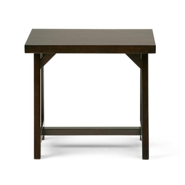 Sawhorse Solid Wood 22 in. Wide Square Modern Industrial Modern Industrial End Side Table in Dark Chestnut Brown
