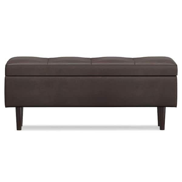 Shay 48 in. Rectangular Storage Ottoman in Distressed Chestnut Brown Vegan Faux Leather, Assembled