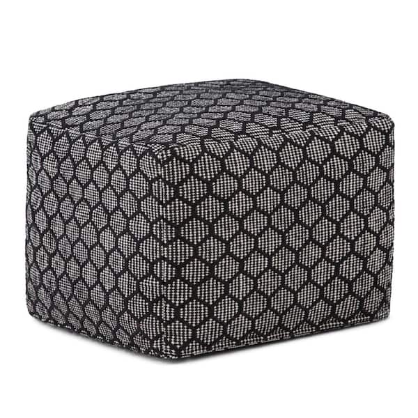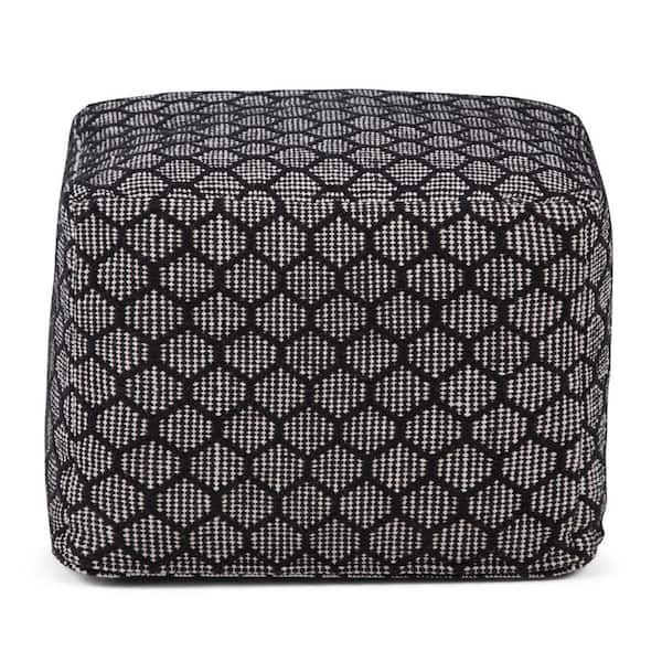Simpson Transitional Square Pouf in Patterned Black, Natural Cotton
