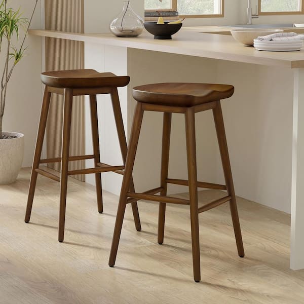Teagan Modern Rustic 30 in. Bar Stool in Dark Walnut Wood, Fully Assembled
