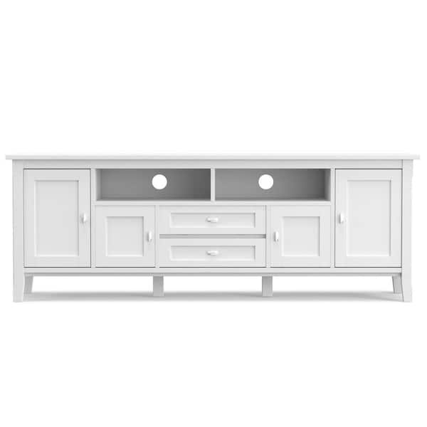 Warm Shaker Solid Wood 72 in. Wide Transitional TV Media Stand in White for TVs up to 80 in.