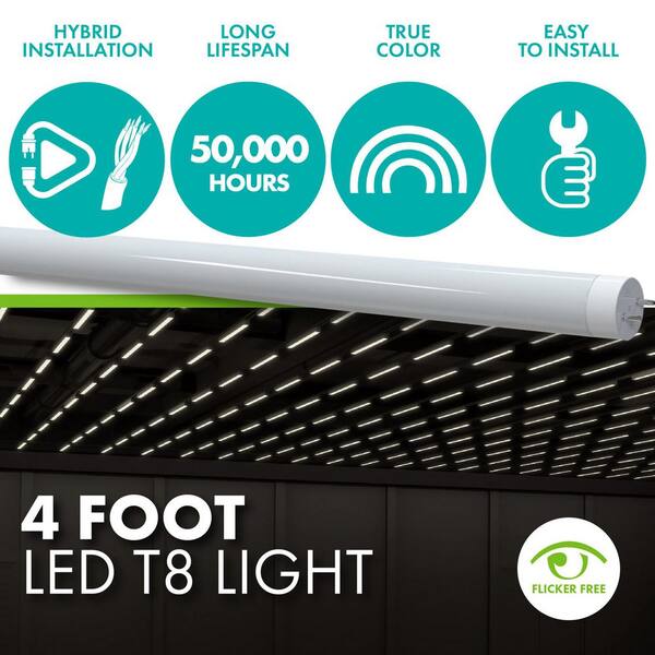 14-Watt/32-Watt Equivalent 48 in. Linear T8 Hybrid Type A/B LED Tube Light Bulb, Cool White Light 4000K (300-Pack)
