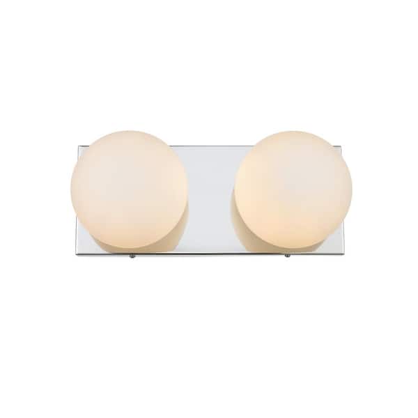 Simply Living 14 in. 2-Light Modern Chrome Vanity Light with Frosted White Round Shade