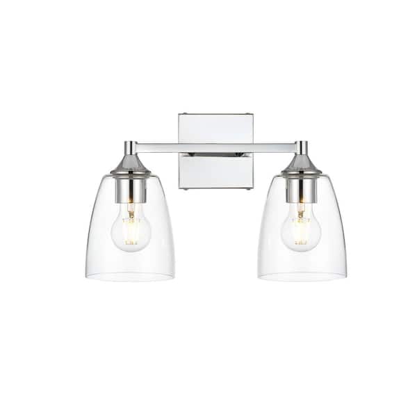 Simply Living 15 in. 2-Light Modern Chrome Vanity Light with Clear Bell Shade