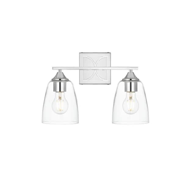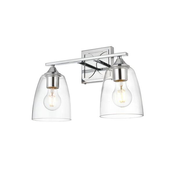 Simply Living 15 in. 2-Light Modern Chrome Vanity Light with Clear Bell Shade