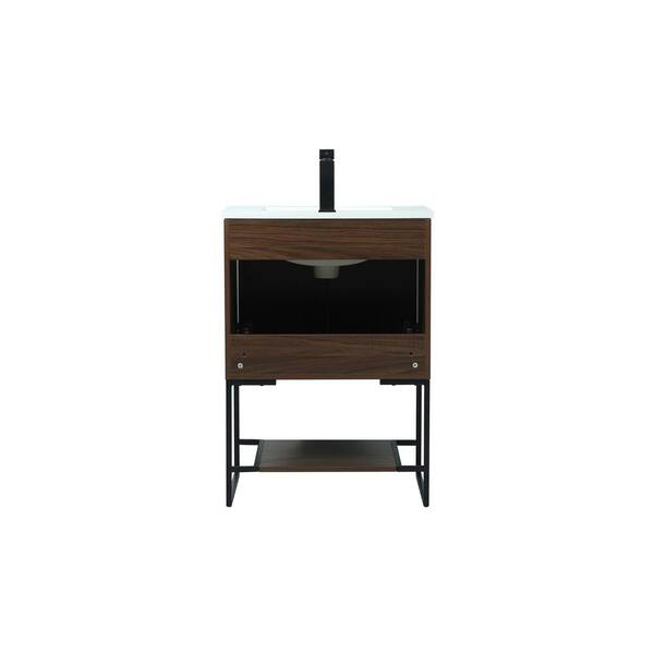 Simply Living 24 in. Single Bathroom Vanity in Walnut with Engineered Marble Vanity Top in Ivory White