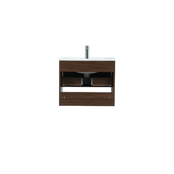 Simply Living 24 in. Single Sink Walnut Bath Vanity with Ivory White Engineered Marble Top