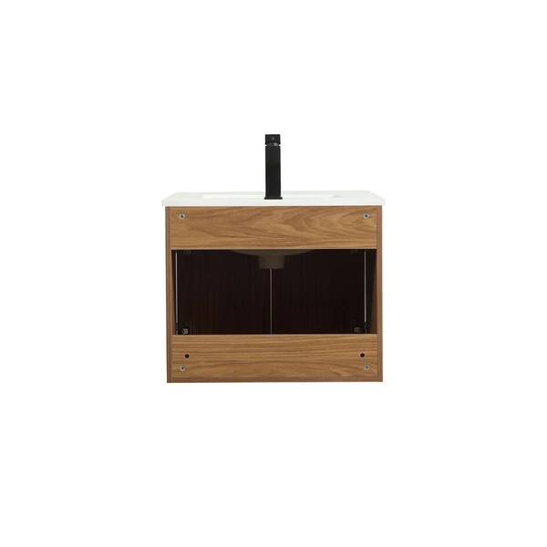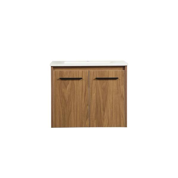 Simply Living 24 in. W x 18 in. D x 19.7 in. H Bath Vanity in Walnut Brown with Ivory White Engineered Marble Top