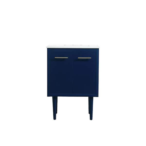 Simply Living 24 in. W x 19 in. D x 33.5 in. H Bath Vanity in Blue with Ivory White Engineered Marble Top