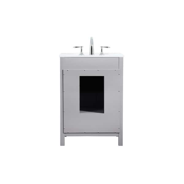 Simply Living 24 in. W x 19 in. D x 34 in. H Bath Vanity in Grey with Calacatta White Engineered Marble Top
