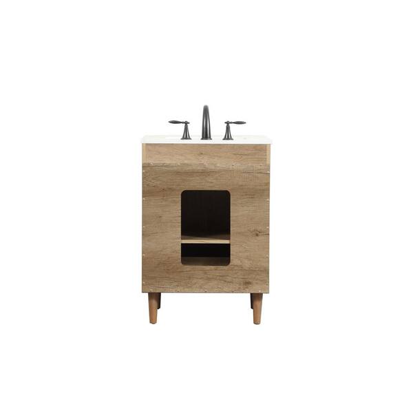 Simply Living 24 in. W x 19 in. D x 34 in. H Bath Vanity in Natural Oak with Ivory White Engineered Marble Top