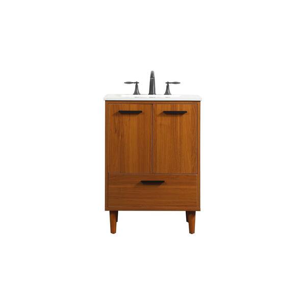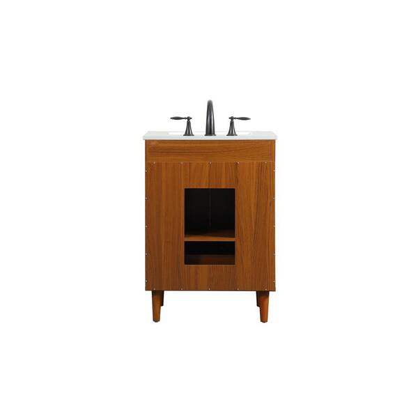 Simply Living 24 in. W x 19 in. D x 34 in. H Bath Vanity in Teak with Ivory White Engineered Marble Top