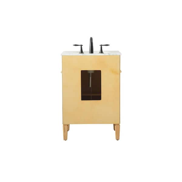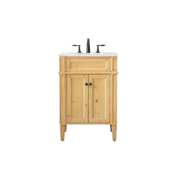 Simply Living 24 in. W x 21.5 in. D x 35 in. H Bath Vanity in Natural Wood with Carrara White Marble Top