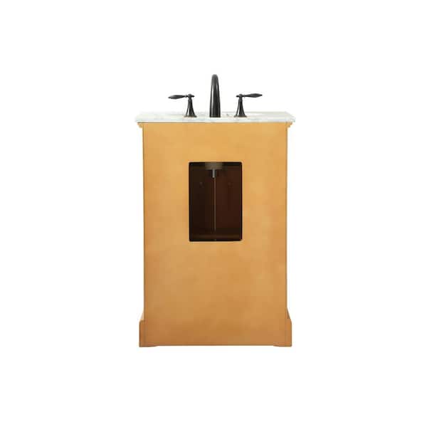 Simply Living 24 in. W x 21.5 in. D x 35 in. H Bath Vanity in Natural Wood with Carrara White Marble Top