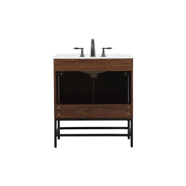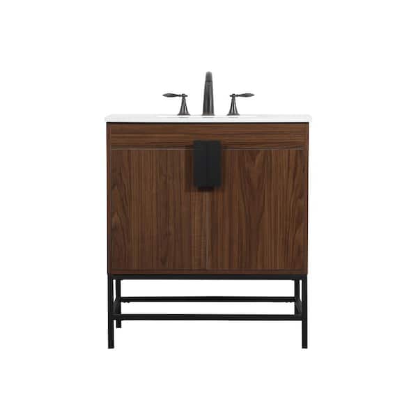 Simply Living 30 in. W x 19 in. D x 33.5 in. H Bath Vanity in Walnut with Ivory White Engineered Marble Top