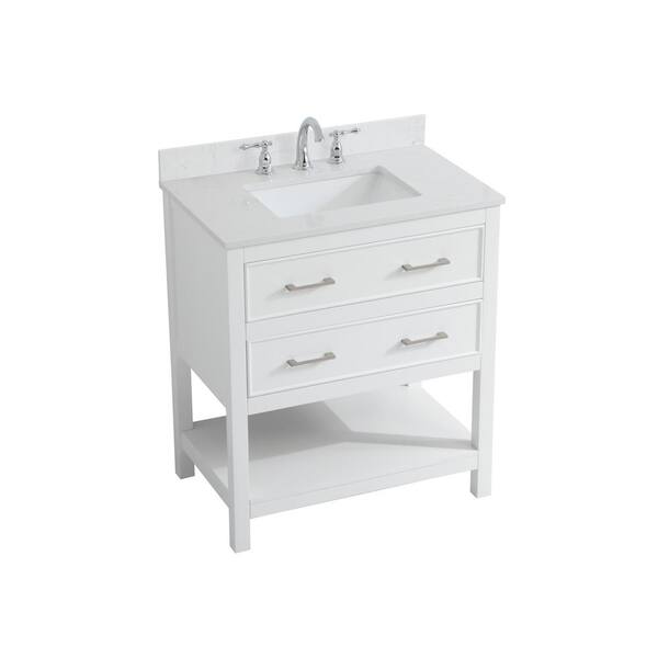 Simply Living 30 in. W x 19 in. D x 34 in. H Bath Vanity in White with Calacatta White Engineered Marble Top