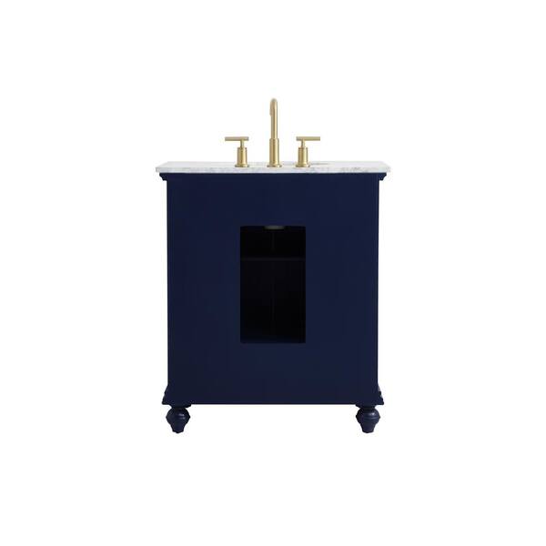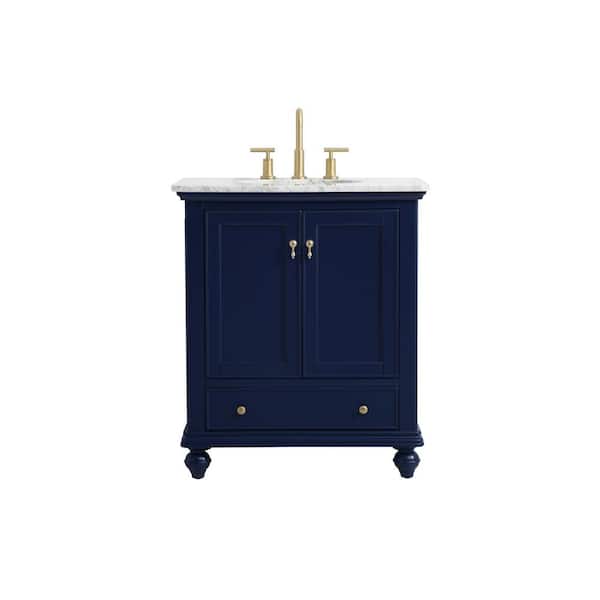 Simply Living 30 in. W x 21 in. D x 35 in. H Bath Vanity in Blue with Carrara White Marble Top