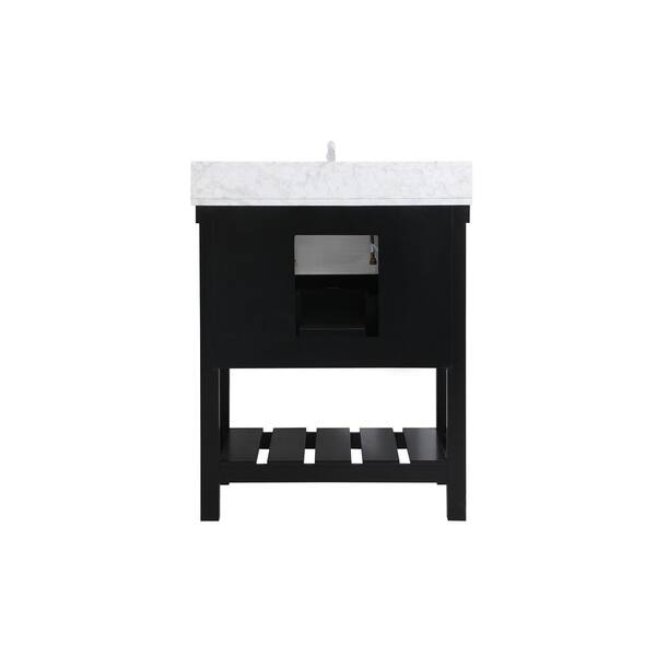 Simply Living 30 in. W x 22 in. D x 34.125 in. H Bath Vanity in Black with Carrara White Marble Top