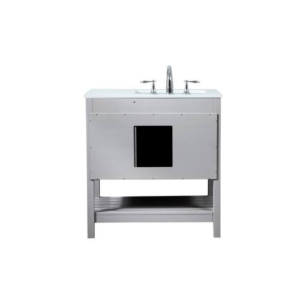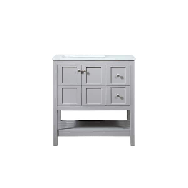 Simply Living 32 in. Single Bathroom Vanity in Grey with Quartz Vanity Top in Calacatta White