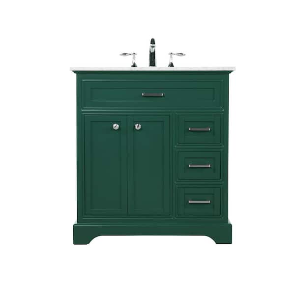 Simply Living 32 in. W x 21.5 in. D x 35 in. H Bath Vanity in Green with Carrara White Marble Top