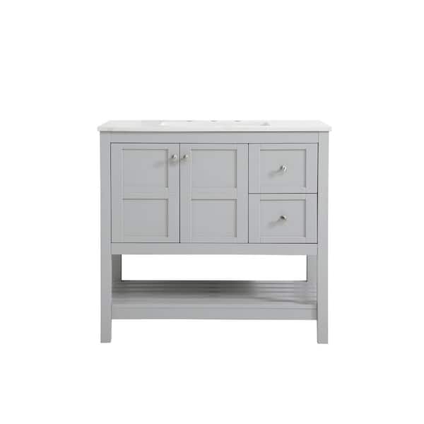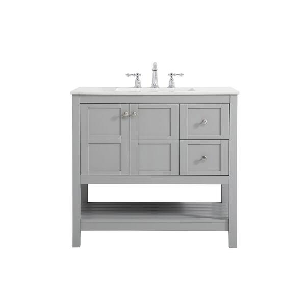 Simply Living 36 in. Single Bathroom Vanity in Gray with Quartz Vanity Top in Calacatta White