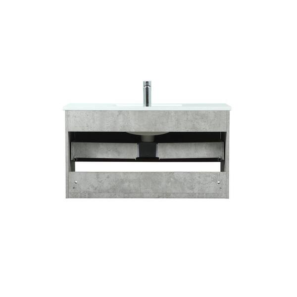 Simply Living 36 in. Single Sink Concrete Grey Bath Vanity with Ivory White Engineered Marble Top