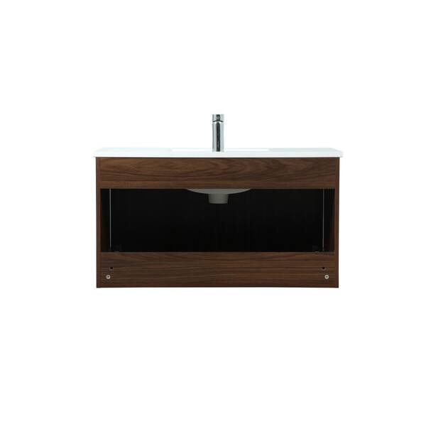 Simply Living 36 in. W x 18 in. D x 19.7 in. H Bath Vanity in Walnut with Ivory White Engineered Marble Top