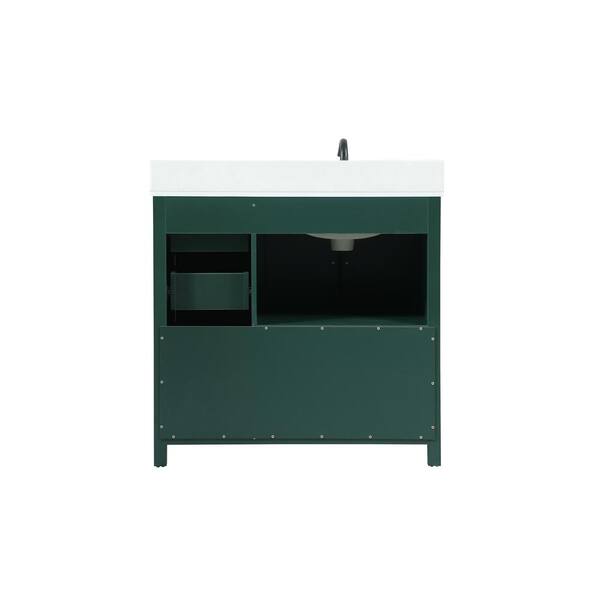 Simply Living 36 in. W x 19 in. D x 34 in. H Bath Vanity in Green with Ivory White Engineered Marble Top