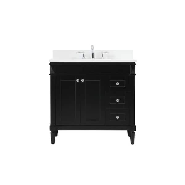 Simply Living 36 in. W x 21 in. D x 35 in. H Bath Vanity in Black with Ivory White Engineered Marble Top
